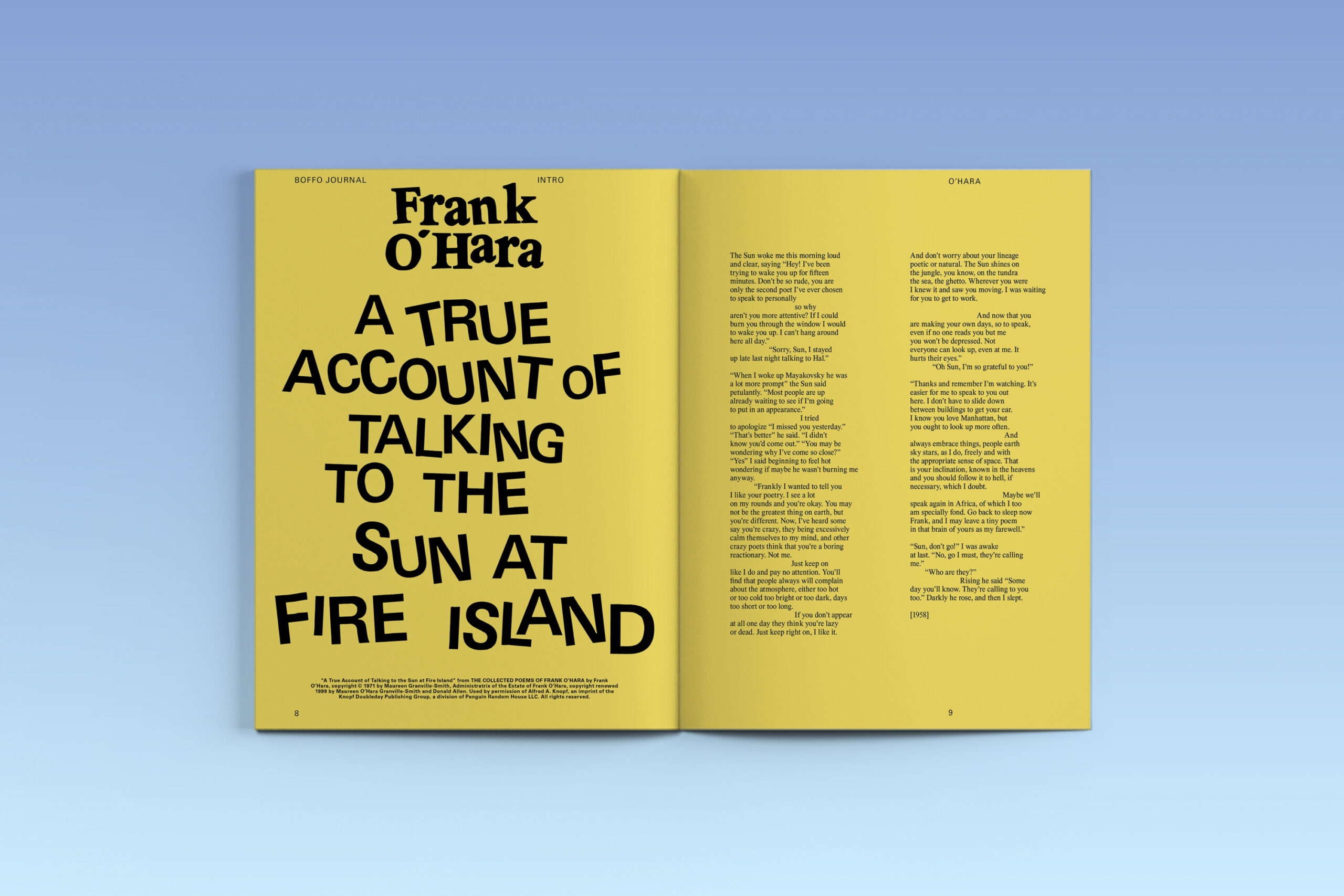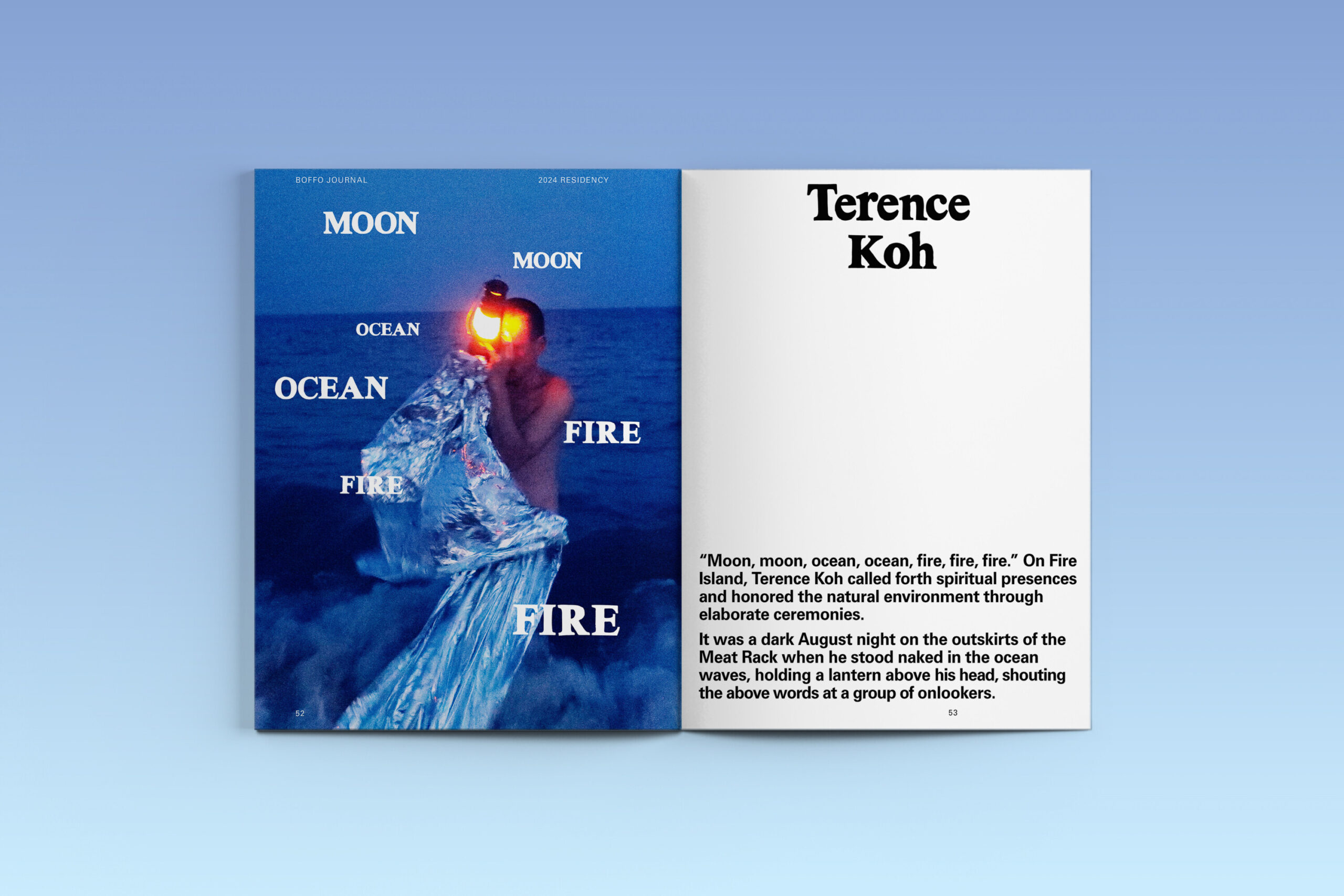 BOFFO Journal: Talking to the Sun is an annual magazine that presents writing, documentation, and imagery from BOFFO’s five artist residencies and 12-hour Performance Festival on Fire Island.
